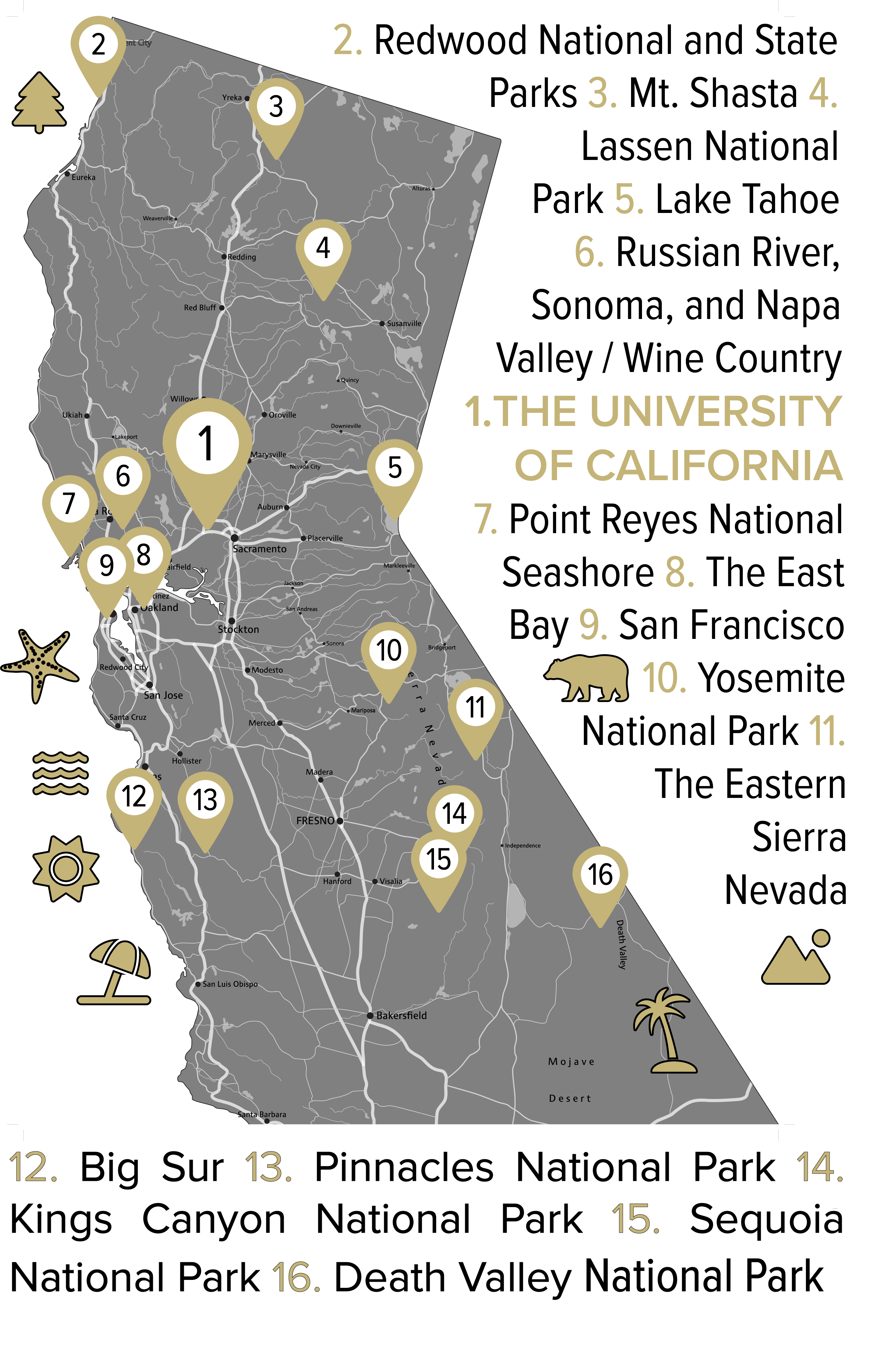 Northern California is beautiful. From Davis, you can day trip to the vineyards to enjoy world-class wine tasting in Napa, Sonoma, and Russian River Valleys. A short drive or train ride away is San Francisco and all its iconic landmarks such as the Golden Gate Bridge and Alcatraz, or instead you can enjoy the art and food scenes in the East Bay. If you're willing to venture a bit further, you can visit Yosemite National Park to see its iconic granite cliffs and waterfalls, Redwood National and State Parks to walk among ancient towering trees, or Lake Tahoe for year-round outdoor activities like skiing and hiking. Alternatively you could take a scenic drive along Highway 1 to charming towns like Mendocino or Big Sur’s rugged coastline, or explore Lassen Volcanic National Park, Mount Shasta, and historic gold rush towns.